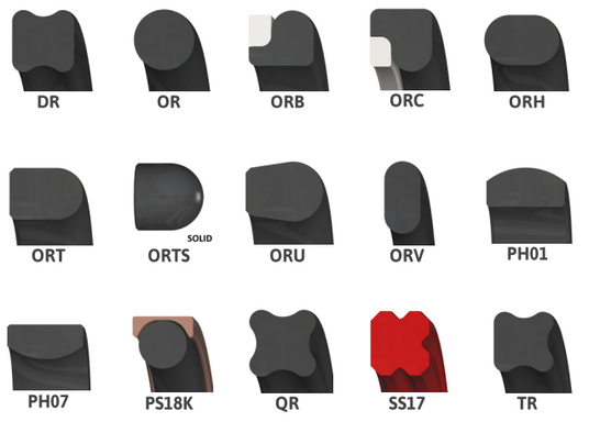 Seals are manufactured using the latest computer technology in metric or imperial sizes, from 1/4" (6mm) up to 98" (2500mm) in a variety of materials, including but not limited to;